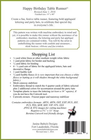 Happy Birthday Table Runner From Janine Babich Designs By Babich, Janine - PAPER/PRINTED - DOWNLOAD KEY INCLUDED