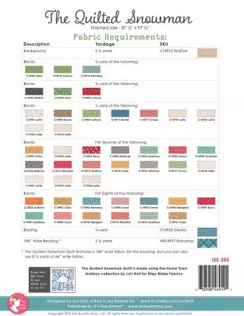 The Quilted Snowman From It's Sew Emma/Bee in my Bonnet Co. By Lori Holt - PAPER/PRINTED