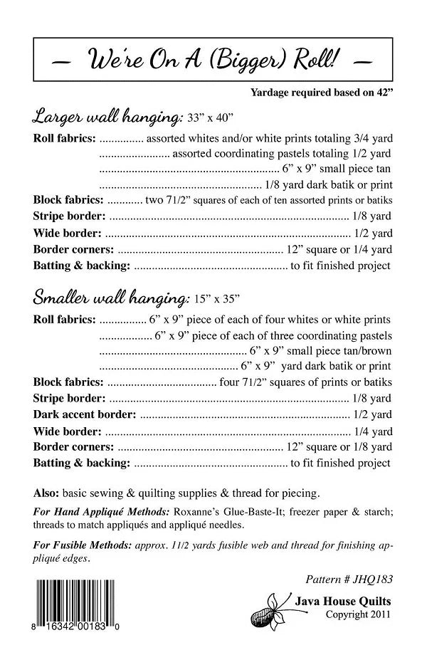 We're On A Bigger Roll From Java House Quilts by Karen Brow - PAPER/PRINTED